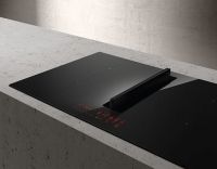 Вытяжка в варочной панели имеет 4 скорости и работает в режиме отвода. В ее комплектацию входят алюминиевый жироулавливающий фильтр и и керамические угольные фильтры длительного использования. Есть индикация загрязнения фильтров. Вытяжка относится к А-классу энергоэффективности. Ее максимальная производительность составляет 1200 м³/ч.