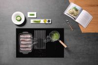 Обе левых и обе правых конфорки могут объединяться в одну вытянутую зону нагрева благодаря функции Bridge. Таким образом можно использовать нестандартную по форме посуду.