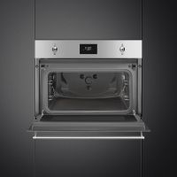 Микроволновая печь Smeg SO4301M0X представлена в цвете «нержавеющая сталь» . Обработка против отпечатков пальцев сделает уход за внешним видом модели простым и быстрым. На двойном LED-дисплее отображаются выбранные режимы и происходящие в камере процессы, что увеличивает комфорт эксплуатации.