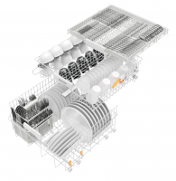 Посудомоечная машина 60 см Miele G 5022 SCU управляется механическими кнопками на передней панели и вмещает до 14 комплектов. Третий уровень загрузки позволяет компактно размещать столовые приборы. Предусмотрены держатели для бокалов. Можно установить одну из пяти автоматических программ мытья, таймером отложить старт вплоть до одних суток.