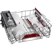 Вместимость до 13 комплектов посуды делает аппарат оптимальным выбором для семей и любителей принимать гостей. Две вместительные корзины, верхняя из которых регулируется по высоте благодаря системе RackMatic-3, позволяют легко размещать как крупные кастрюли, так и хрупкие бокалы. Для столовых приборов предусмотрена отдельная корзина в нижнем коробе, а складные направляющие для тарелок (8 штук) обеспечивают гибкость загрузки. Программа IntensiveZone/Power Zone справляется даже с сильно загрязнённой утварью, а функция Hygiene+ обеспечивает особую чистоту, что особенно важно для семей с маленькими детьми.