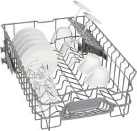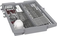 Также есть функция «Дополнительная сушка», которая обеспечивает идеальную сухость посуды после мытья. Устройство оборудовано теплообменником для сушки посуды, а также функцией самоочистки и режимом очистки «Machine Care / Easy Clean», которые помогут поддерживать машину в чистоте и продлить ее срок службы. Удобство использования обеспечивает функция «Home Connect», которая позволяет управлять машиной дистанционно через приложение на смартфоне. Также есть электронные индикаторы наличия соли и ополаскивателя, отложенный старт на 1–24 часа и защита от протечек. Машина имеет размеры 81.5×44.8×55 см и весит 45 кг, что делает ее достаточно компактной и удобной для встраивания. Внутренний резервуар выполнен из нержавеющей стали, что гарантирует его долговечность и устойчивость к коррозии.