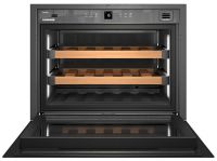 Прозрачные стеклянные дверцы шкафа позволяют наслаждаться прекрасным обзором вашей коллекции вин. Стекло дверцы имеет защитное покрытие, которое защищает вино от ультрафиолетовых лучей, которые могут повредить вкус и качество напитка. Встроенная светодиодная подсветка с плавным изменением яркости обеспечивает прекрасную визуализацию вашей коллекции, особенно в условиях низкой освещенности. Для удобства использования дверца оборудована доводчиком SoftSystem, который гарантирует мягкое закрытие и предотвращает возможные повреждения бутылок. Деревянные полки также помогают предотвратить вибрацию, которая может привести к выпадению осадка, сохраняя вино в идеальном состоянии.