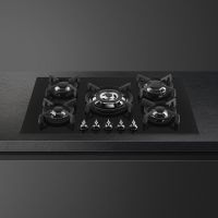 Варочная панель SMEG PV375CN выполнена из черной стеклокерамики. Чугунные решетки долговечны и не теряют эстетичного внешнего вида. Поворотные регуляторы позволяют плавно менять уровень нагрева При затухании пламени подача газа будет автоматически прекращена.
