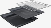 Функция Home Connect позволяет управлять духовкой удаленно через приложение на смартфоне или планшете. Система автоматического приготовления AutoPilot и многоточечный термощуп PerfectRoast обеспечивают идеальный результат приготовления любого блюда. Внутреннее освещение на основе LED-технологии обеспечивает яркое и равномерное освещение, позволяя контролировать процесс приготовления. Дверца духового шкафа оснащена амортизатором SoftClose, который обеспечивает плавное и бесшумное закрытие. Блокировка от детей предотвращает случайное включение прибора. Очистка духового шкафа не вызовет проблем благодаря пиролитическому методу очистки. При высокой температуре все загрязнения превращаются в пепел, который легко удаляется. В комплекте с духовым шкафом идут комбинированная решетка, эмалированный противень и универсальный противень. Мощность подключения составляет 3.6 кВт, что обеспечивает быстрый разогрев и высокую производительность.