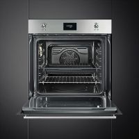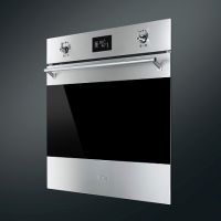 Духовой шкаф Smeg SF6301TVX представлен в типичном дизайне, характерном для коллекции Classica. Корпус из нержавеющей стали обработан против следов пальцев дополнен чёрным антибликовым стеклом Eclipse и серебристой фурнитурой. Переключатели поворотные, а программатор электронный.
