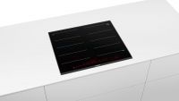 Варочная панель Bosch PXX675DV1E из линейки FlexInduction позволяет объединять четыре конфорки в две независимые или одну большую зону нагрева. Автоматически активируются только те индукторы, над которыми находится посуда, что минимизрует расход электроэнергии.