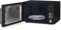 Микроволновая печь Smeg MOE25B оснащена удобным LED-дисплеем, с помощью него настраиваются режимы нагрева, также имеется поворотный переключатель, и кнопка Push Button. Внутренне пространство освещается с помощью светодиодных ламп, они дольше служат и меньше потребляют электроэнергии. Имеется режим разморозки, вы можете выставить размораживание по времени и по весу.