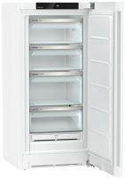 Морозильник Liebherr FNE 4204 - это отдельностоящая модель из линейки BluPerformance, серии Pure, класса Comfort. Устройство в белом цвете с дверью из стали, которая открывается справа, но также имеет возможность перевешивания. Встроенная ручка двери и система EasyOpen обеспечивают удобство использования. Управление морозильником электронное, с тач-дисплеем и сенсорными элементами. Индикаторы отображают температуру морозильной камеры. Морозильник имеет одну дверь, одну камеру и одну температурную зону, обслуживаемую одним компрессором. Мощность морозильной камеры оценивается в четыре звезды. Камера оснащена системой NoFrost, которая предотвращает образование льда, и автоматической системой размораживания. Внутри камеры находятся четыре ящика из пластмассы. Отделение SpaceBox предлагает дополнительное пространство для хранения, а система FrostSafe помогает сохранять холод внутри ящиков при открытии двери. Выдвижной ящик с удобной функцией наклона и система VarioSpace обеспечивают гибкость в использовании пространства.