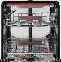 Модель оснащена индикаторами, которые уведомляют вас о ходе цикла. Сигнал, транслируемый на пол, меняющий цвет с красного на зеленый, указывает на то, что цикл посудомойки завершен. Кроме того, звуковой и сигнал предупредит вас, когда прибор закончит работу. Верхняя корзина посудомоечной машины регулируется по высоте, даже если она полностью загружена. Это позволяет легко разместить большие предметы и посуду нестандартных размеров. Нижний короб оборудован складными держателями, которые помогают создать плоское пространство, а короб MaxiFlex для ложек и вилок позволяет эффективно использовать пространство и улучшает результаты мытья.
