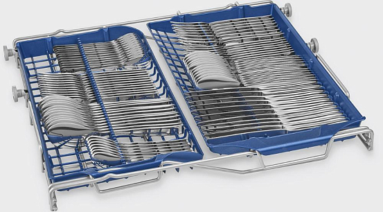 В модели предусмотрены 11 программ и 7 температурных режимов, в том числе экономичные со сниженным потреблением воды и моющего средства, а также два режима быстрой мойки и функция половинной загрузки FlexiZone, позволяющей использовать одну из корзин по выбору.