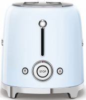 Тостер SMEG TSF01BLEU на 2 ломтика в стиле 50-х годов выпущен в пастельно-голубом цвете. Прибор позволяет поджаривать хлеб, размораживать тосты и подогревать булочки. Благодаря функции автоматической центровки ломтики находятся на одинаковом расстоянии от нагревательных элементов, и поэтому поджариваются равномерно. Прорезиненные ножки не скользят, что исключает случайное падение и сдвигание.