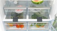 Внутреннее освещение холодильной камеры выполнено на основе светодиодной технологии, что обеспечивает яркое и равномерное освещение. Зона свежести VitaFresh plus позволяет сохранить свежесть продуктов на долгое время. Морозильная камера оснащена системой NoFrost и автоматической системой размораживания. Она имеет мощность замораживания 20 кг/24 ч и может автономно сохранять холод в течение 30 часов. В ней также предусмотрена функция суперзамораживание SuperFreezing, которая позволяет быстро заморозить большое количество продуктов.