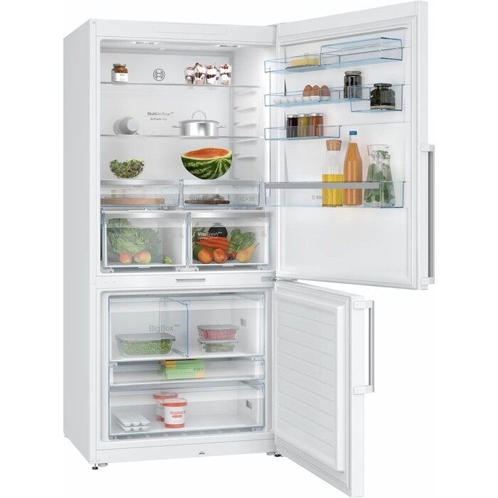 Двухкамерный холодильник Bosch KGP86FWC0N– это высокотехнологичное устройство, которое сочетает в себе элегантный дизайн и инновационные функции. Вертикальная накладная ручка двери удобна в использовании, а дверной упор справа обеспечивает удобство при открывании. Управление холодильником осуществляется электронно, с помощью сенсорных элементов управления и дисплея. Это позволяет точно регулировать температуру внутри холодильной и морозильной камер, а также использовать различные функции, такие как функция «Отпуск» или функция суперохлаждения. Система охлаждения динамическая, а система размораживания - автоматическая. Благодаря этому, внутри холодильника всегда поддерживается оптимальный микроклимат, который позволяет сохранить свежесть продуктов на долгое время. Система MultiAirflow обеспечивает равномерное распределение холодного воздуха по всему объему холодильника.