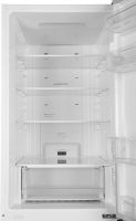 Две дверцы устройства открываются на правую сторону, что обеспечивает удобство использования. Внутри расположены 4 полки из закаленного стекла, 2 из которых можно регулировать по высоте. Также в холодильнике есть 5 полок на дверце и 1 ящик для овощей.