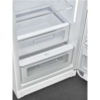 Холодильник Smeg FAB28RWH5 выполнен в универсальном белом цвете. Модель прекрасно дополнит интерьер в любом стиле. 2 регулируемые полки из закаленного стекла легко переставляются по высоте, благодаря чему в отделение можно легко поместить даже крупногабаритную посуду. Светодиодная подсветка ярко освещает пространство холодильной камеры.