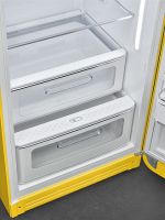 Холодильник Smeg FAB28RYW5 представлен в желтом цвете. Модель из коллекции 50-х годов станет ярким акцентом в интерьере. Устройство оборудовано зоной Life Plus, которая позволяет продлить срок хранения свежего мяса, рыбы и молочных продуктов. Светодиодная подсветка отличается долговечностью, что гарантирует комфорт эксплуатации.