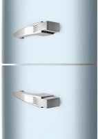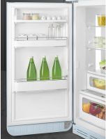 Холодильник Smeg FAB30LPB5 выполнен в голубом цвете и прекрасно дополнит интерьер в стиле ретро вместе с другой техникой из коллекции 50-х годов. Боковая светодиодная подсветка не загораживается посудой и продуктами и ярко освещает внутреннее пространство камеры, что гарантирует комфорт эксплуатации. Прибор предусматривает в холодильном отделении 2 полки из закаленного стекла, которые легко переставляются по высоте и просты в уходе.