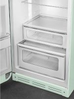 Холодильник Smeg FAB30LPG5 выполнен в цвете «Пастельный зеленый» и прекрасно дополнит интерьер в ретро-стиле вместе с другой техникой из коллекции 50-х годов. В зоне Life Plus поддерживается низкая температура около 0°C, благодаря чему она подходит для хранения мяса, рыбы и молочных продуктов. Внутренняя светодиодная подсветка ярко освещает пространство камеры, что гарантирует комфорт эксплуатации. Автоматическое размораживание холодильного отделения обеспечивает простой уход за прибором.