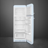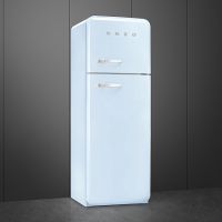 Холодильник Smeg FAB30RPB5 из коллекции «Стиль 50-х годов» представлен в голубом цвете. Благодаря двум регулируемым полкам можно быстро подстраивать внутреннее пространство камеры для размещения любой, даже крупногабаритной, посуды. К тому же они выполнены из закаленного стекла и поэтому отличаются долговечностью и простотой в уходе. Боковая светодиодная подсветка гарантирует комфорт эксплуатации прибора.