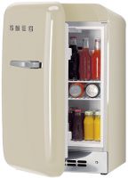 Минибар Smeg FAB5LCR5 из коллекции «Стиль 50-х годов» выполнен в кремовом цвете и станет прекрасным дополнением любого интерьера. На полках из закаленного стекла удобно размещать бутылки и посуду. К тому же за ними просто ухаживать. Автоматическое размораживание и светодиодная подсветка обеспечивают комфорт эксплуатации.